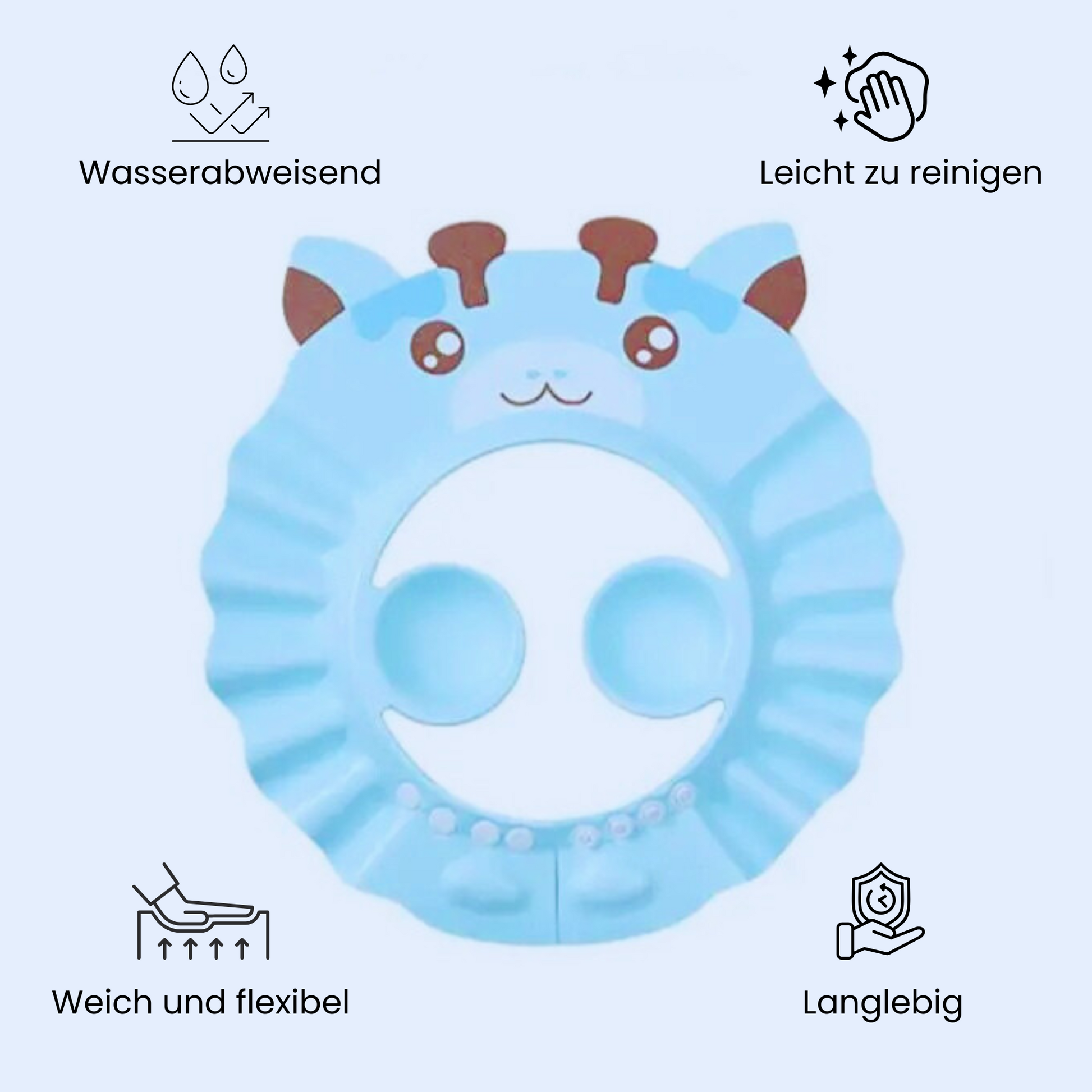 Die DuschFee ist aus hochwertigem, weichem Material gefertigt, das optimalen Komfort garantiert. Sie schützt effektiv vor Wasser und Shampoo und verhindert zuverlässig das Eindringen in die empfindlichen Augen und Ohren Ihres Kleinkindes. Die Mütze passt sich dank ihres flexiblen Designs sanft dem Kopf an, ohne zu drücken oder zu verrutschen.